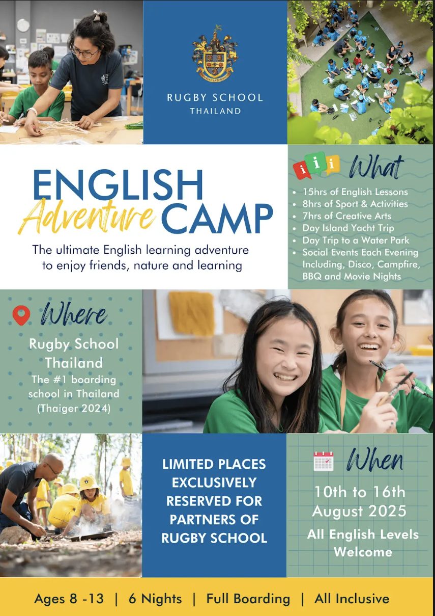 タイの名門インターナショナルスクール「Rugby School Thailand」で開催される、英語漬けのサマーキャンプです。